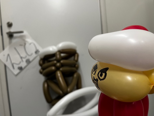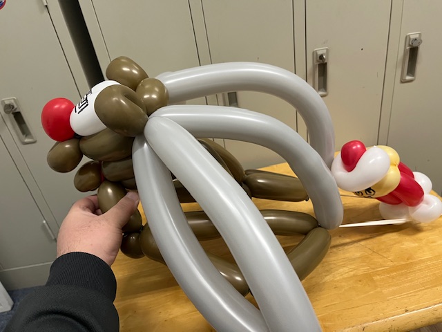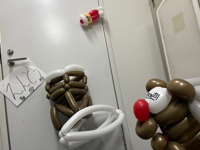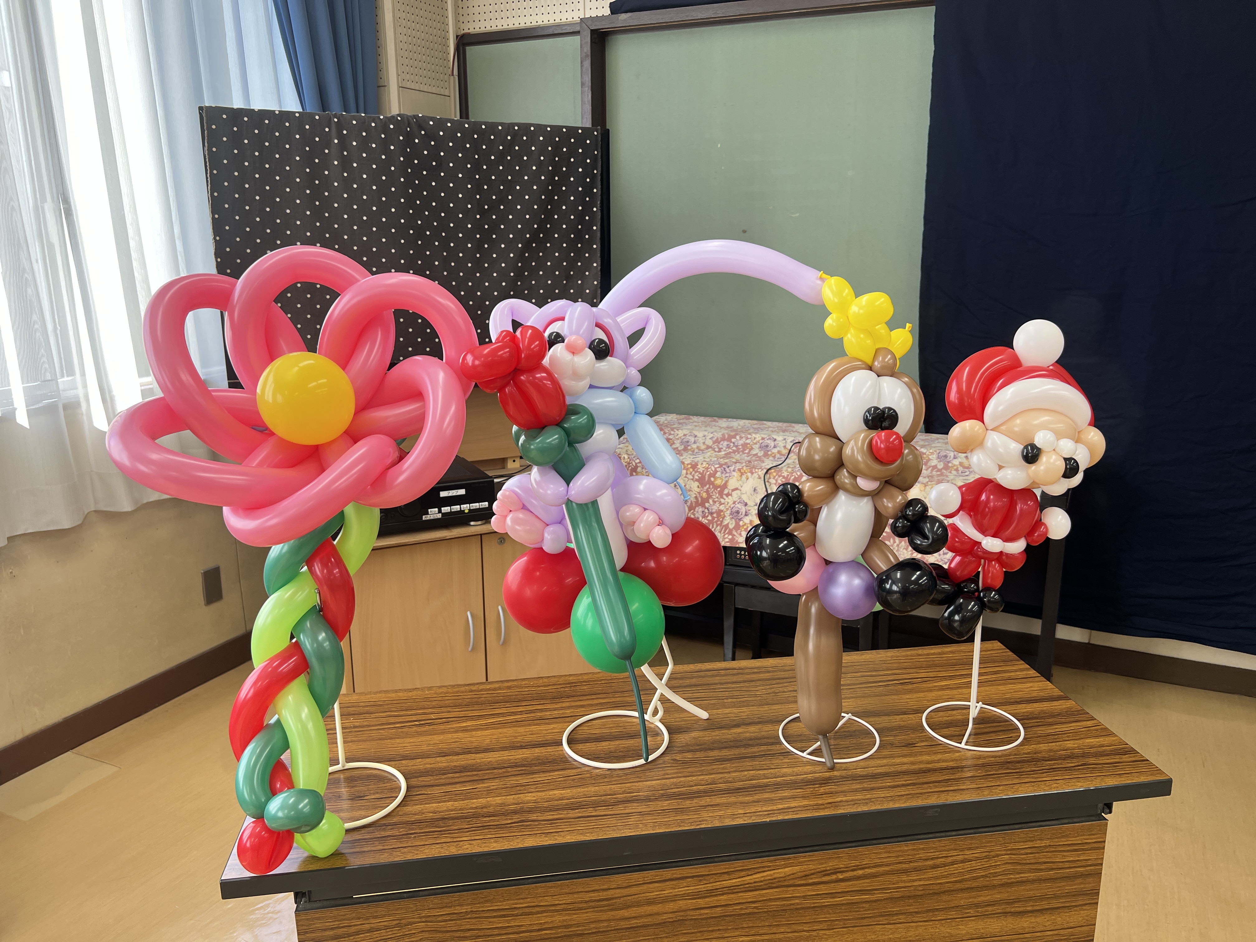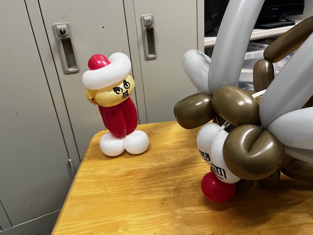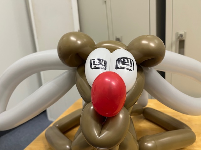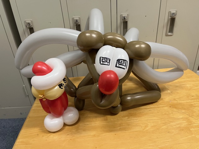 これからプレゼントを配りに行くバルーンドッグサンタです