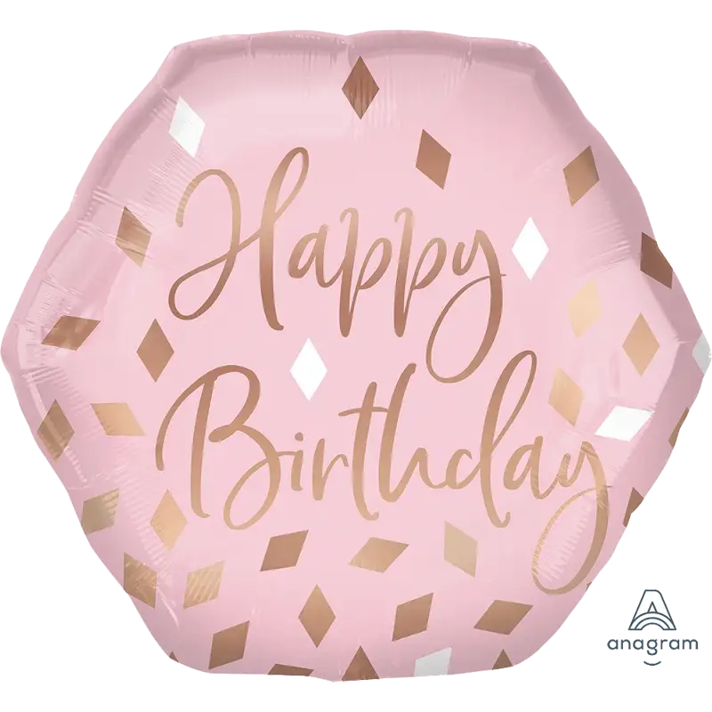 筆記体の文字がおしゃれな六角形の誕生日バルーンです。
