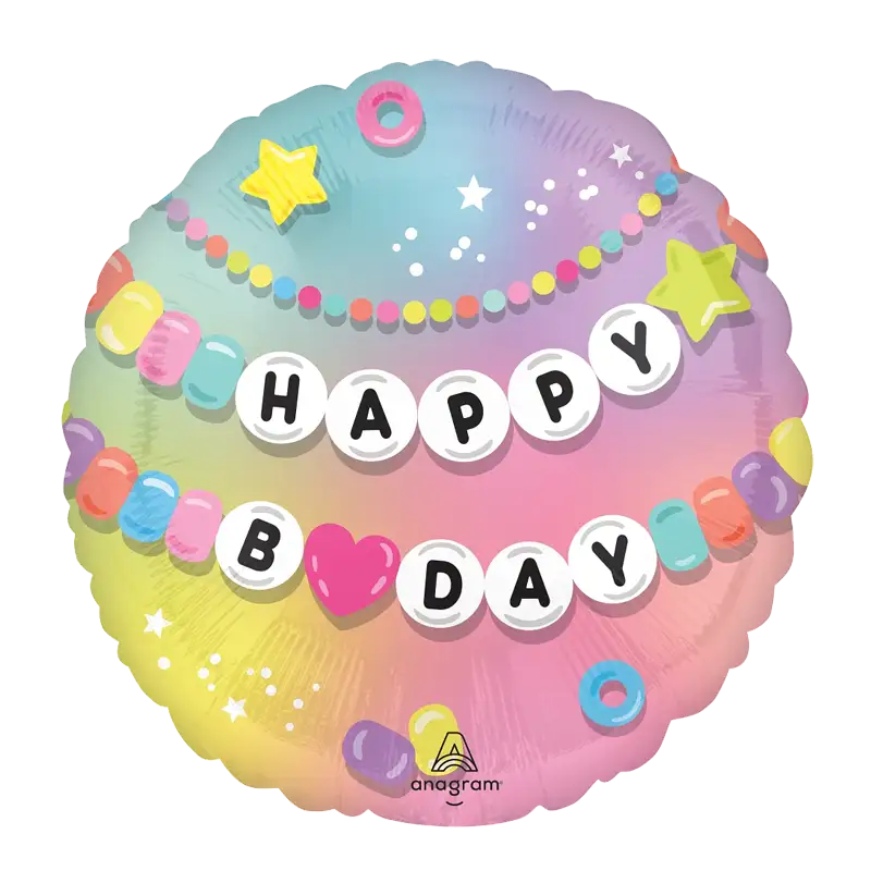 ビーズアクセサリーをモチーフにした、ゆめかわいいデザインの誕生日バルーンです。