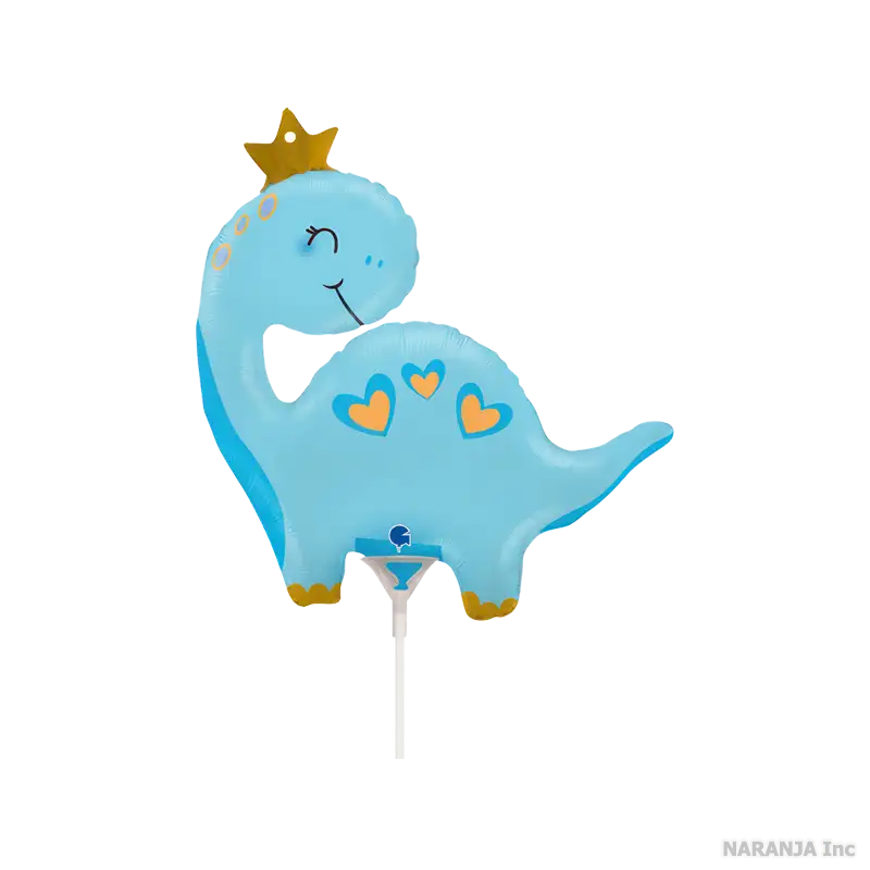 王冠をかぶった、にっこり優しい表情の恐竜がとてもキュートなバルーンです。ヘリウムを入れても浮きません。