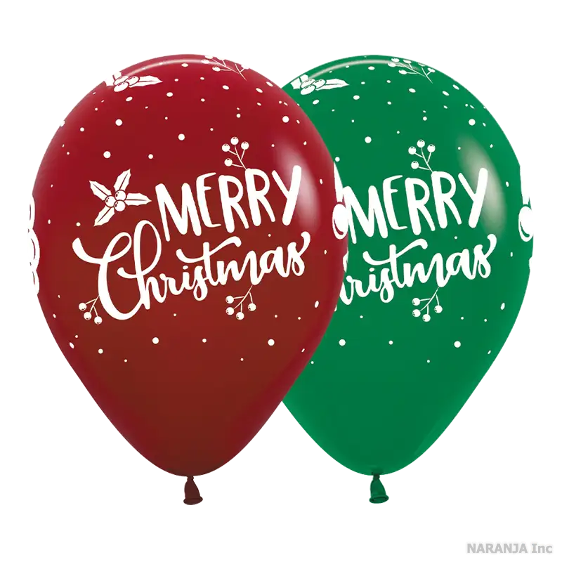ファッションカラーのインペリアルレッドとフォレストグリーンの2色のバルーンに、白く「Merry Christmas」の文字がプリントされています。