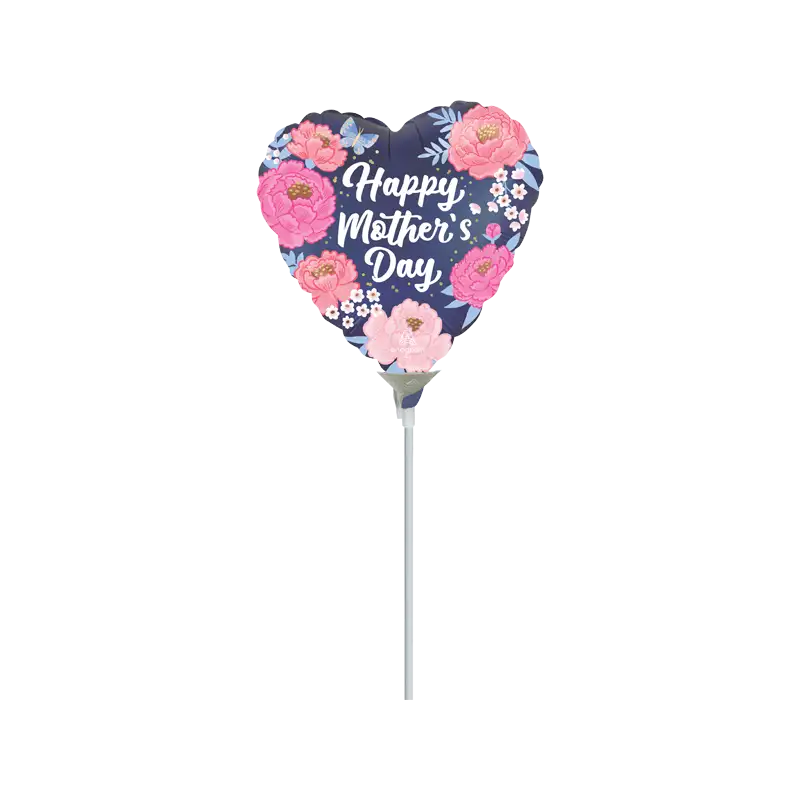 深みのあるネイビーカラーに、華やかなピオニー(芍薬)が映える母の日バルーンです。ヘリウムを入れても浮きません。