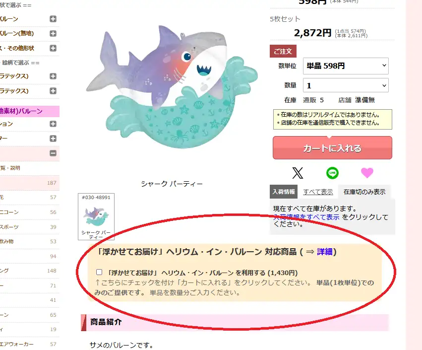 ヘリウムを入れてぷかぷか浮いた状態でお届けのサービス
