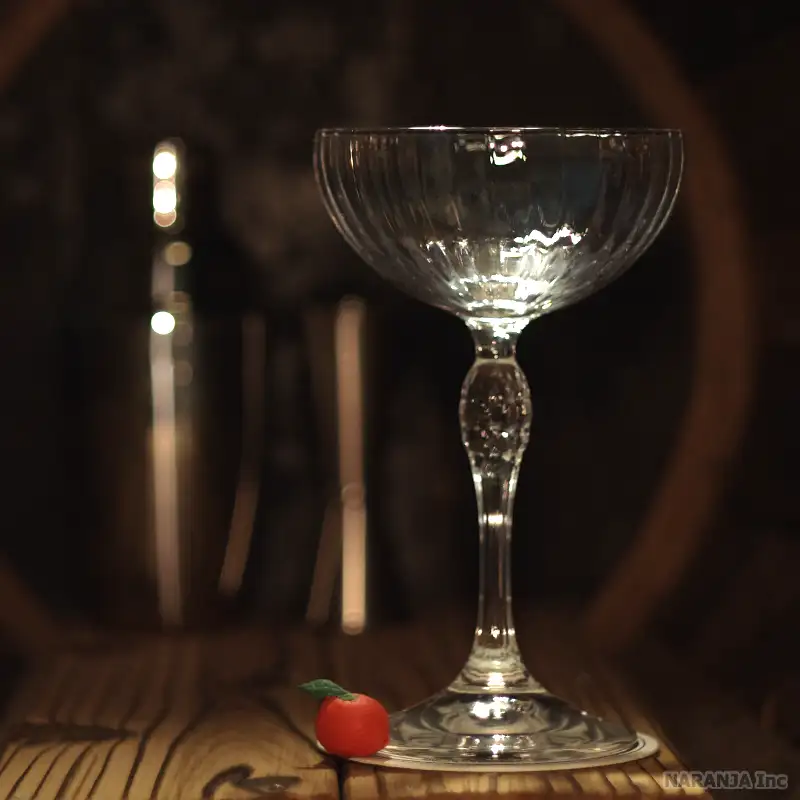 ボルミオリ・ロッコによる、ステムとボウル部の装飾が特徴的なクープグラスです。ステム部は禁酒法時代のアメリカで流行していたグラスを参考にデザインされています。