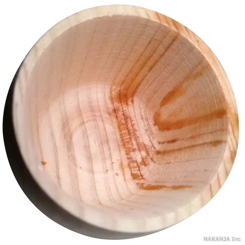 ヒノキ特有の香りが日本酒の香りと混ざりあって、他の酒器とは違った味わいをお楽しみいただけます。木の表面に茶色く「ヤニ(樹脂)」が表面に浮き出ている場合がございます。人体には無害とされていますが、べたつきが気になる場合は消毒用アルコールで拭き取ってください。