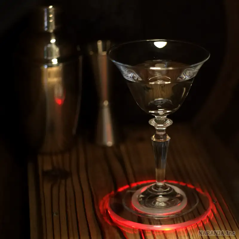 「白」は、高速点滅モードと低速点滅モード、常時点灯モードの全3種 (※いずれも色は白のみ) に切り替えられます。特にタンブラーの側面のカットやステム部の装飾、注いだカクテルの色味等を強調したいときにオススメです。