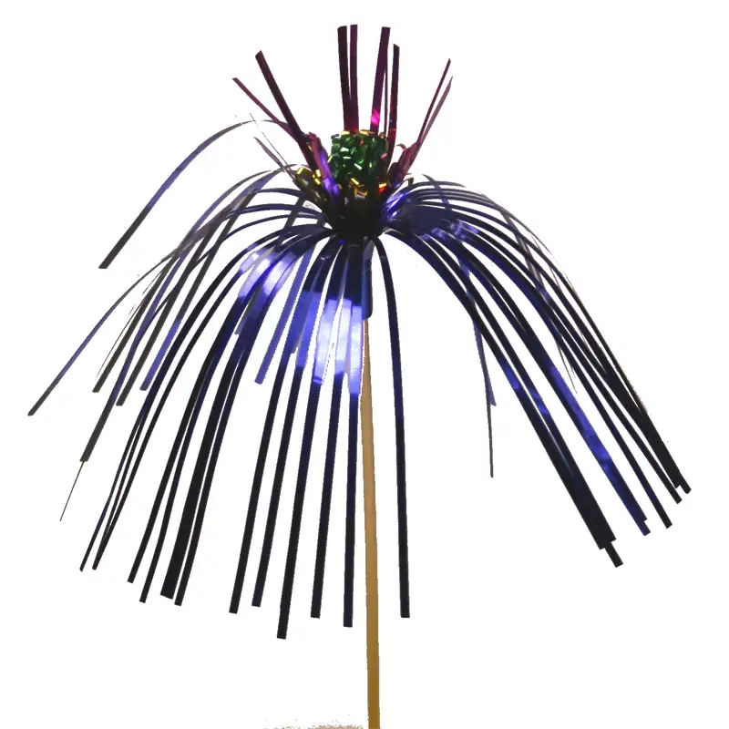アルミのフィルム製の華やかなデコレーションです。ファウンテンAはファウンテンEにダンデライオンの飾りがプラスされた物、ファウンテンBはファウンテンAの上の飾りが2色になった物、ファウンテンCはファウンテンBの飾りの周りにさらに飾りがプラスされた物です。