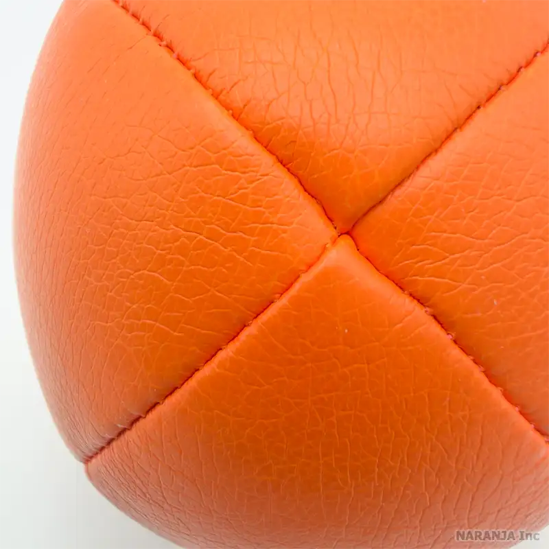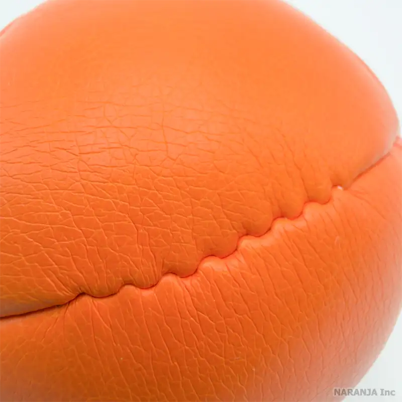 4面体や6面体で作られることの多いビーンバッグですが、Gボールズ E8 プロはできるかぎり球体に仕上げるために三角形のパネルを8枚縫い合わせた8面体です。また、ボールの中には完全にペレットを詰めておらず、軽い力で押すとその箇所がへこむ硬さです。